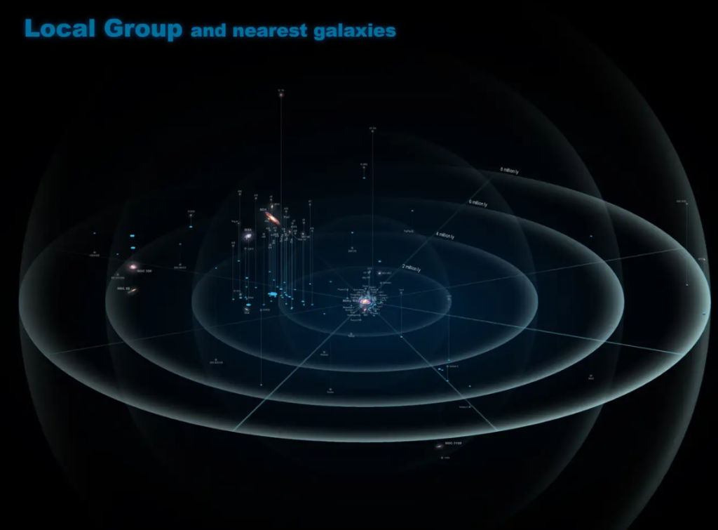 In the midst of this immense expanse, our Local Group serves as a guiding light of familiarity. With the Milky Way and Andromeda taking center stage, this collection of galaxies remains accessible to us, providing a glimpse of cosmic companionship in an otherwise unattainable universe.